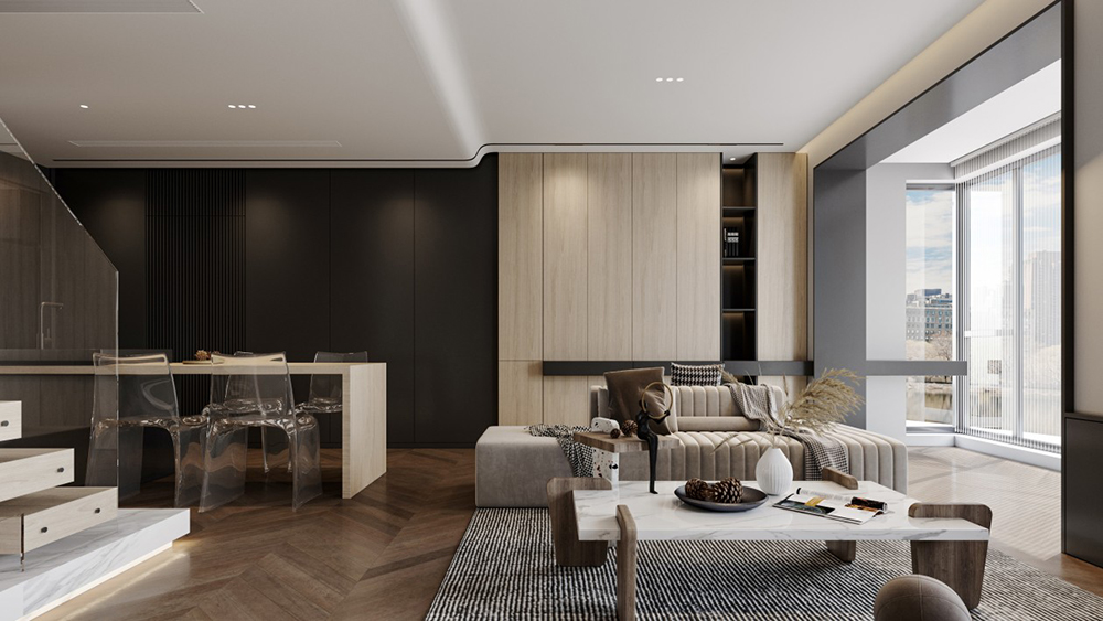 軟裝設(shè)計最大限度的保留了客戶空間的開敞性,開敞明亮的空間五臟俱全,很好的傳達了住宅的新居住模式。